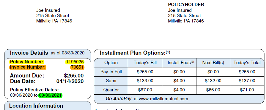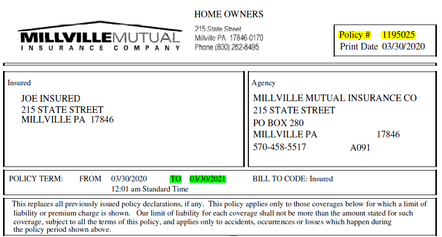 To register (or link a policy) for MyMillville, please locate the policy number and either the policy expiration date or invoice number located on your policy's declaration and/or premium notice.